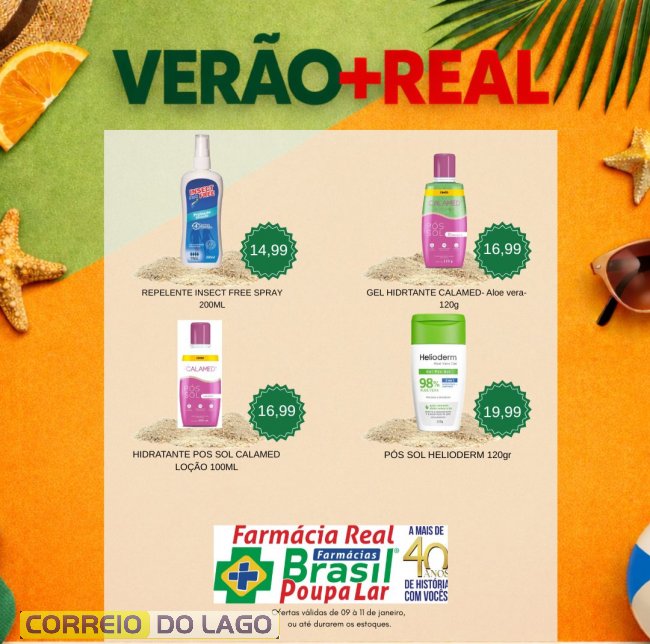 Aproveite as Ofertas Verão + Real, válidas nesta sexta-feira (9) até domingo (11) ou enquanto durarem os estoques! Garanta seus protetores solares na Farmácia Real e curta o sol de maneira segura, feliz e cheia de energia.