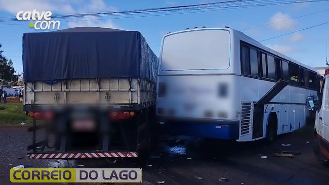 A batida ocorreu no trecho da rodovia considerado perímetro urbano da cidade na pista sentido Cascavel. A carreta seguia sentido Paraguai e, ao tentar fazer um retorno provocou o acidente atingindo o coletivo.