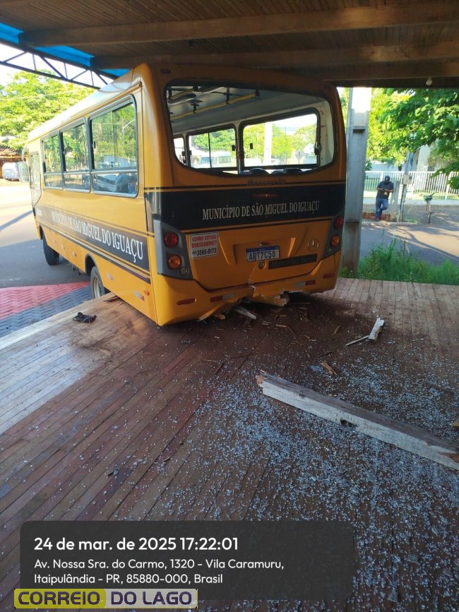 Pouco depois das 17h desta segunda-feira (24), um ônibus escolar do município de São Miguel do Iguaçu ficou sem controle e acabou danificando a estrutura em frente a um container no município de Itaipulândia.