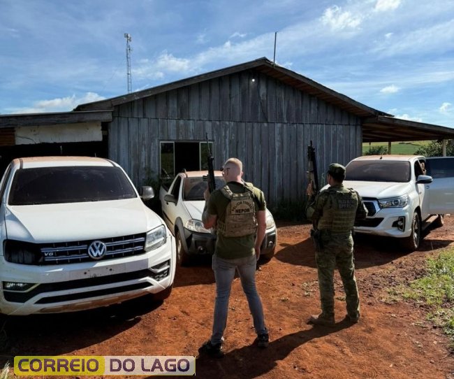 No interior da propriedade, os policiais encontraram duas caminhonetes, uma Toyota Hilux e uma VW Amarok, ambas brancas, completamente carregadas com substância análoga à maconha. Em diligências complementares, um terceiro veículo, uma Fiat Strada, também branca, foi localizado em uma propriedade próxima, situada no sentido da rota de fuga do suspeito.