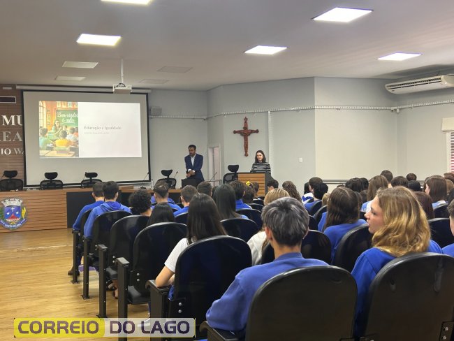 O auditório da Câmara Municipal recebeu hoje uma palestra de grande relevância social, focada no tema da desigualdade social. O convidado e palestrante foi o Dr. André Luiz Quirino Coelho, Promotor de Justiça da cidade de Matelândia.