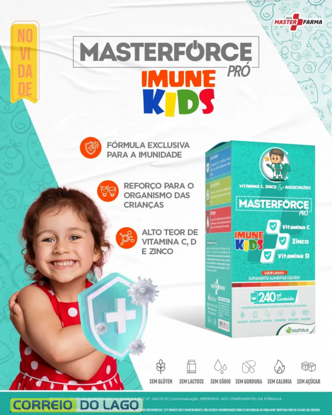 A MasterFarma de Santa Helena apresenta produtos Masterforce, que cuidam da saúde e do bem-estar de toda a família. O Masterforce Pró Imune Kids combina vitaminas C e D e zinco para fortalecer a imunidade das crianças e apoiar seu desenvolvimento diário.