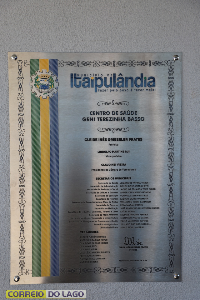 Na manhã desta segunda-feira (30), foi realizada a entrega oficial da parte estrutural do novo Centro de Saúde Geni Terezinha Basso, em Itaipulândia. O evento contou com a presença da prefeita Cleide Prates, do vice-prefeito Lindolfo Martins Rui, do presidente da Câmara de Vereadores, Nei Boiadeiro, da secretária de Saúde, Josiane Vieira, além de vereadores, secretários municipais, servidores da Secretaria de Saúde e membros da equipe administrativa.