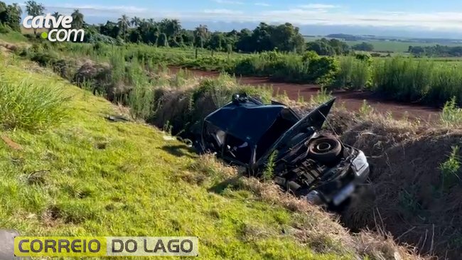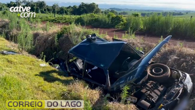 Na tentativa da manobra, os dois automóveis se envolveram em batida. Com a força do impacto, o Uno saiu da pista, capotou em um barranco e parou na canaleta.