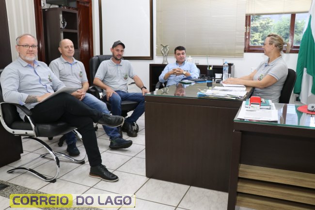 A vice-prefeita de Pato Bragado, Simoni Stein Tornquist, secretário de Planejamento, Volmir Wollmann, procurador Jurídico, Márcio Neukamp e o diretor do Sabra, Cleison Simsen, participaram, na tarde da última quarta-feira (19), de uma reunião com o diretor de Regulação e Fiscalização do Orcispar – Órgão Regulador do Consórcio Intermunicipal de Saneamento do Paraná (Cispar), Rogel Martins Barbosa.