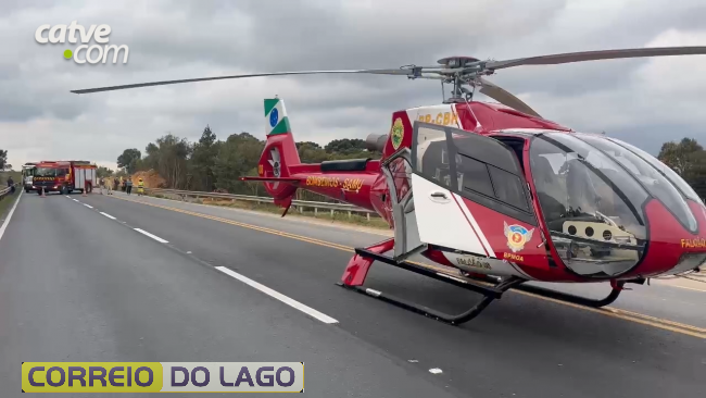 Socorristas do Siate prestaram atendimento no local, e, devido à gravidade do ferimento, o motociclista foi encaminhado ao hospital com apoio do helicóptero Falcão 08.