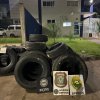 A terceira ação aconteceu às 3h45 desta sexta-feira (19), na Vila Portes, onde veículos foram vistos descarregando pneus. No local, foram apreendidos 18 pneus de caminhão e 4 pneus de automóveis.