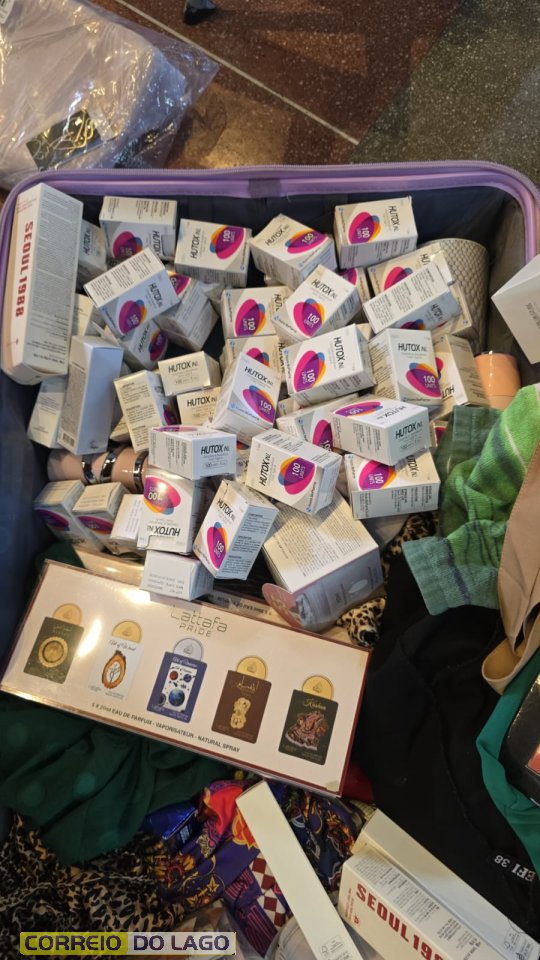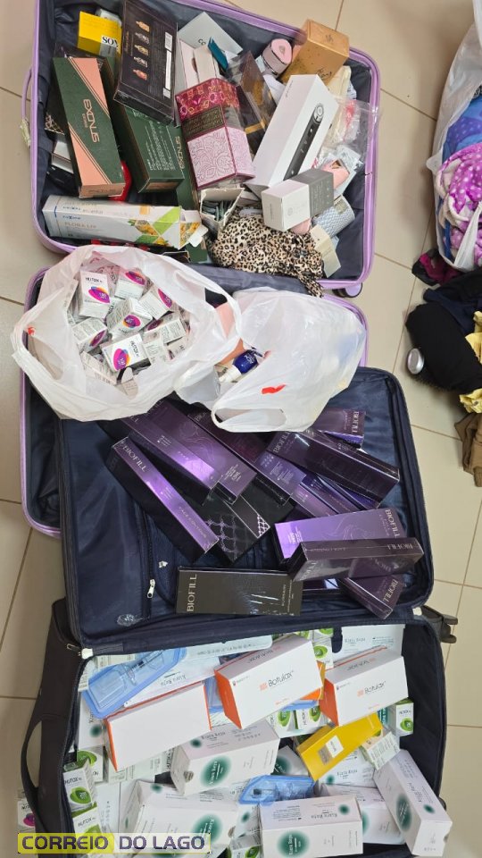 Na vistoria das bagagens, foram encontrados produtos de estética, entre eles uma grande quantidade de toxina botulínica (botox) e injeções de ácido hialurônico. As duas estrangeiras tinham como destino a cidade de Campo Grande (MS).