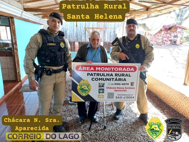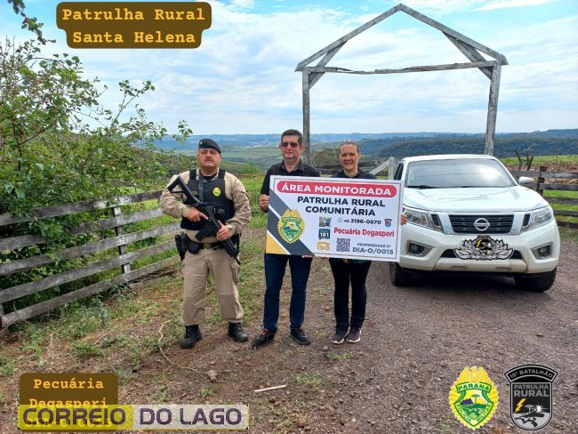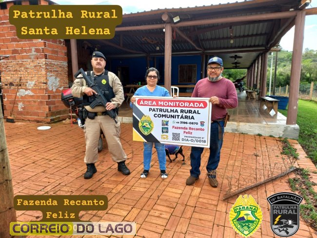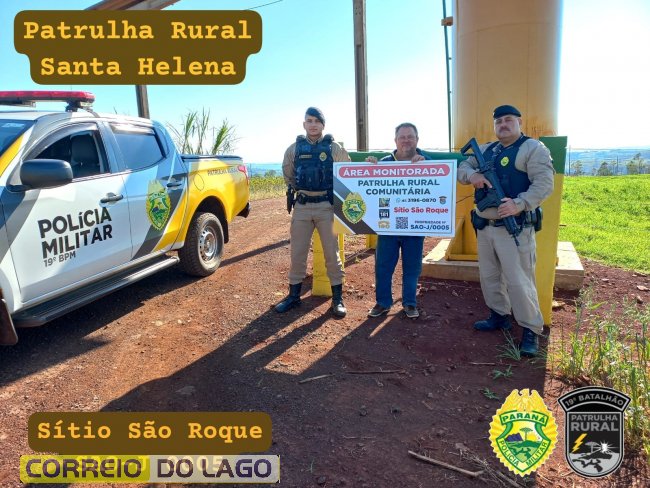 A Patrulha Rural de Santa Helena concentrou suas ações nos municípios de Diamante do Oeste e São José das Palmeiras nos dias 11 e 12 de setembro. Ontem, no interior de Diamante do Oeste, uma nova propriedade foi cadastrada e duas placas entregues aos moradores.