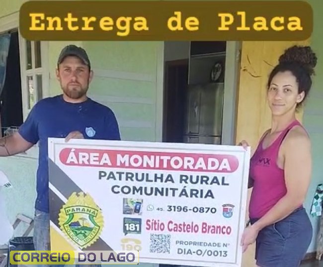 Com a entrega das placas e demais ações, o Projeto Patrulha Rural Comunitária reforça a prevenção de crimes e garante mais tranquilidade às famílias que vivem e trabalham na área rural da região.