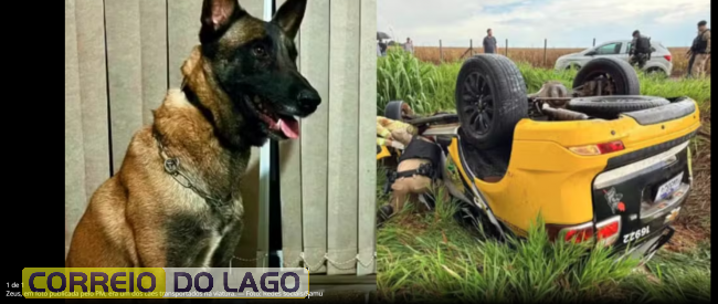 Dois cães policiais estavam na viatura que capotou na PR-323, em Doutor Camargo, no norte do Paraná. O acidente causou a morte de Jean Patrick Niquetti, de 40 anos, cabo da Polícia Militar (PM-PR).