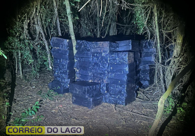 Os agentes realizavam patrulhamento na área quando localizaram os cigarros camuflados, aparentemente prontos para serem transportados. Nenhum suspeito foi encontrado no local.