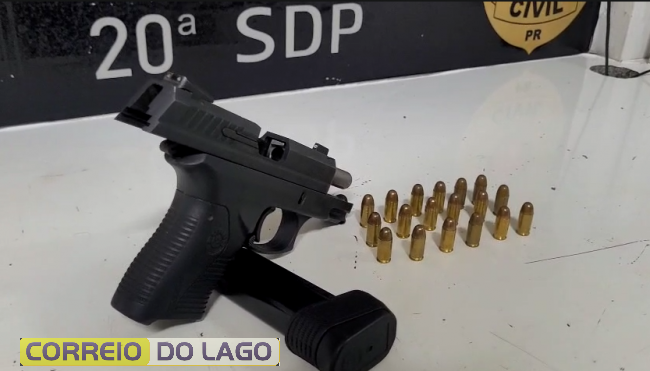 Durante as buscas na residência, os agentes encontraram uma pistola calibre .380, municiada com 18 cartuchos intactos.