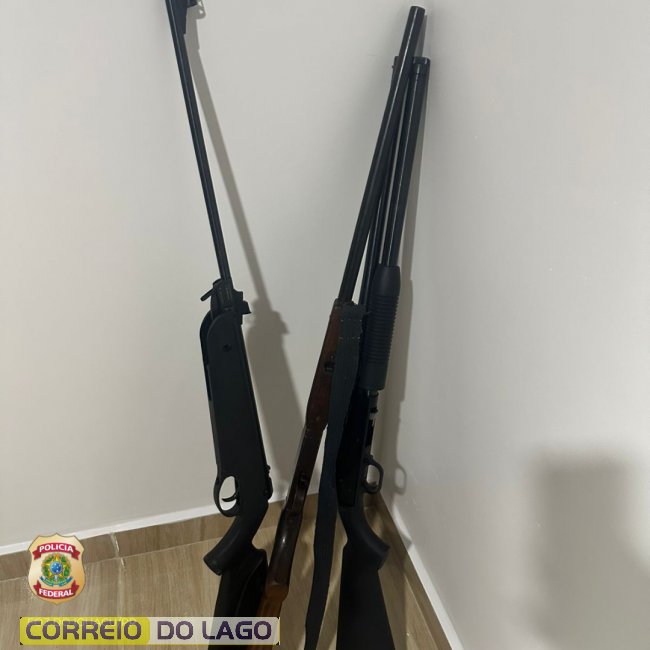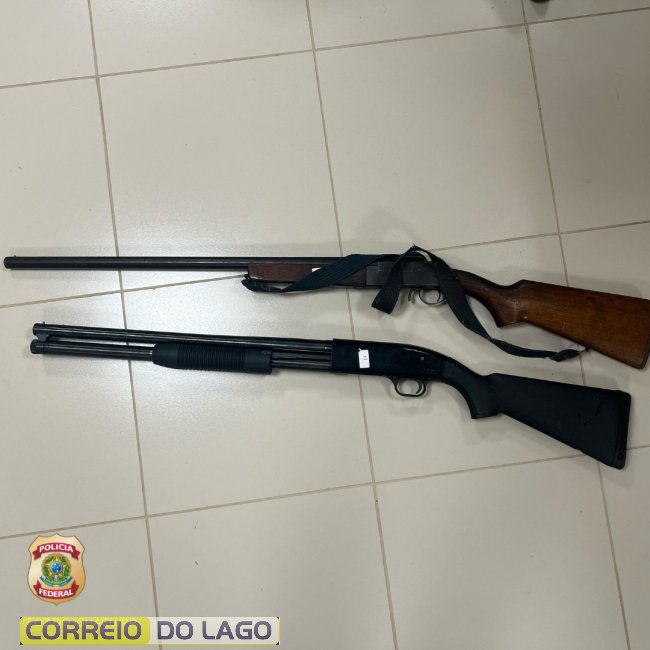Em outro endereço, foram encontradas duas armas de fogo, tipo espingarda, calibre 12, sem registros, além de munições. O responsável pelo local foi preso em flagrante pelo crime de posse ilegal de arma de fogo.