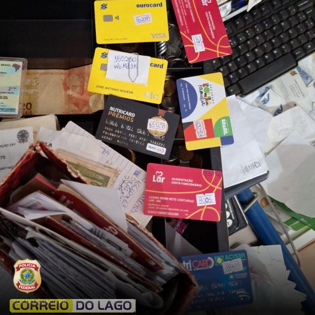 Na residência de um dos alvos foram encontrados dezenas de cartões de benefícios sociais e documentos de identificação de terceiros, além de valores em espécie. Uma mulher recebeu voz de prisão pelo crime de apropriação indébita.