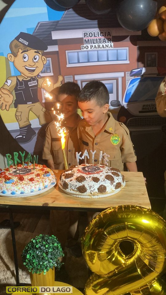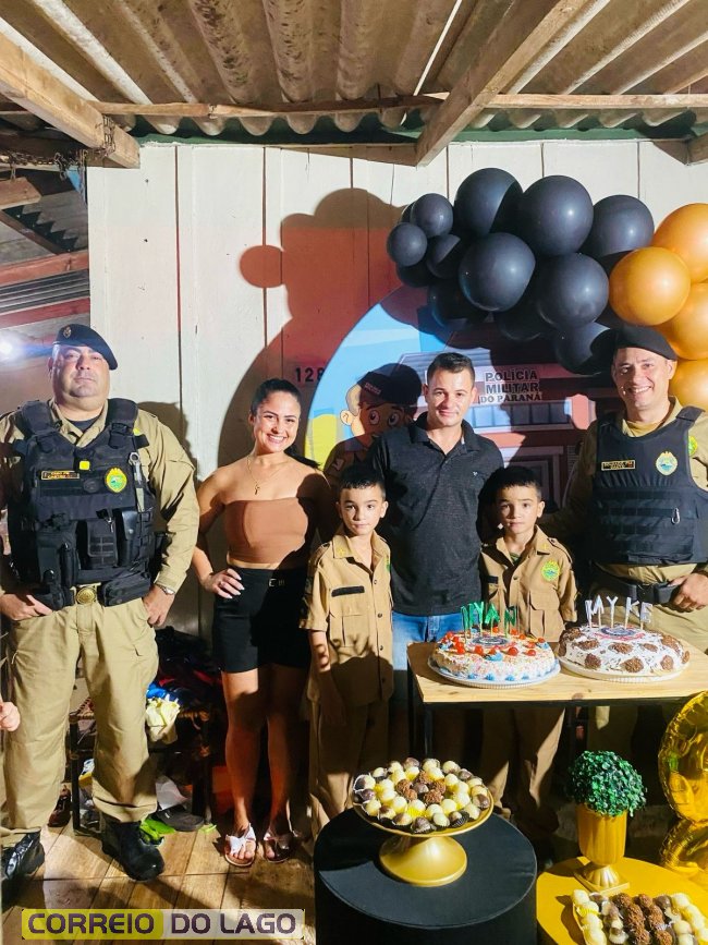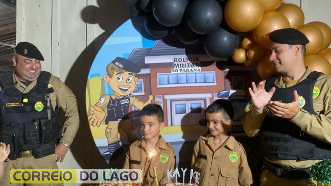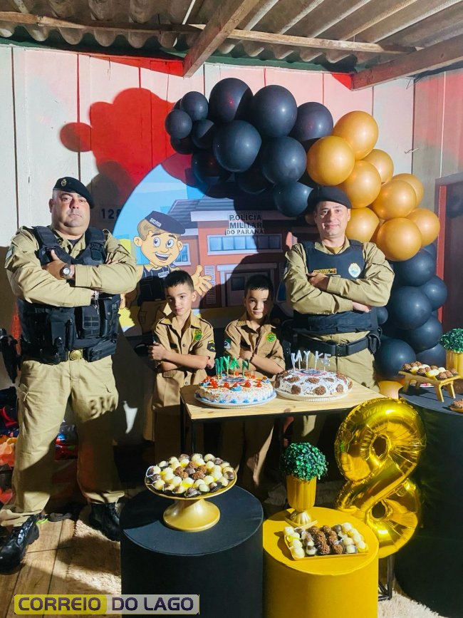 Na noite deste sábado (29), a equipe RPA da Polícia Militar de Itaipulândia proporcionou um momento especial para dois irmãos gêmeos que sonham em seguir a carreira policial. Durante a festa de aniversário de Bryan e Kayke, que completaram 8 anos de idade, os pequenos foram presenteados com fardas da PM Mirim.