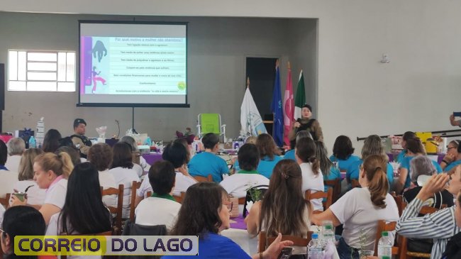 O Clube Atlético de Entre Rios do Oeste recebeu, neste sábado (23), uma palestra com o tema “Violência Doméstica”, que reuniu um grande público e contou com a participação dos clubes de mães do município.