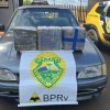 Segundo a corporação, por volta das 16h, os policiais abordaram um Ford Escort, de cor cinza, com placas de Cascavel (PR), conduzido por um homem de 28 anos. Durante a vistoria no automóvel, foram localizados três fardos de maconha no bagageiro.