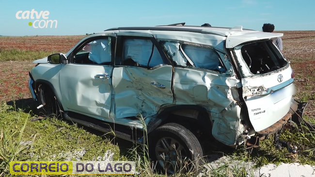 Eram cerca de 5h quando o caminhão câmara fria, que saiu carregado de Matelândia, bateu na Toyota SW4 no km 468 da rodovia 369, em Corbélia