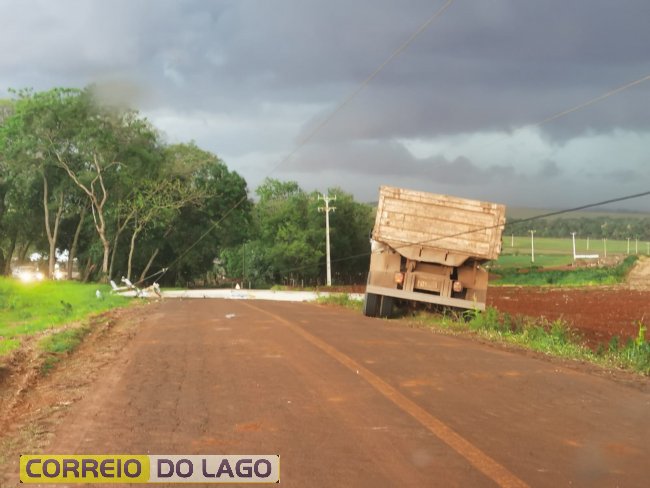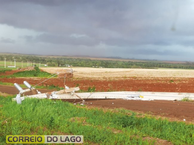 Poste cai em Sub-Sede e interdita estrada em Santa Helena devido a fortes ventos