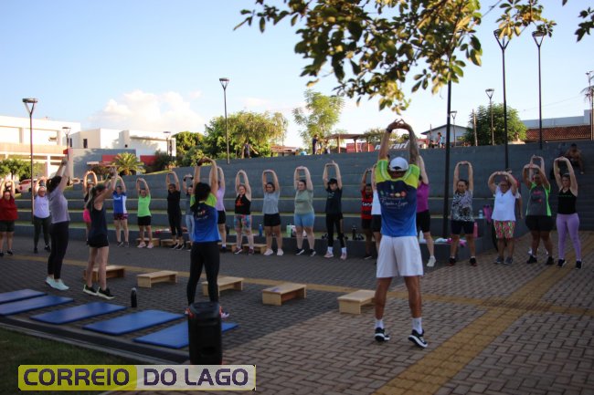Na tarde desta quinta-feira (05), a Praça Santos Dumont foi tomada pela energia e disposição com a retomada das atividades do Funcional, reunindo participantes em um momento de incentivo à prática de exercícios físicos e à promoção da qualidade de vida.