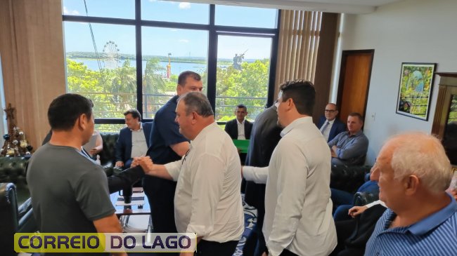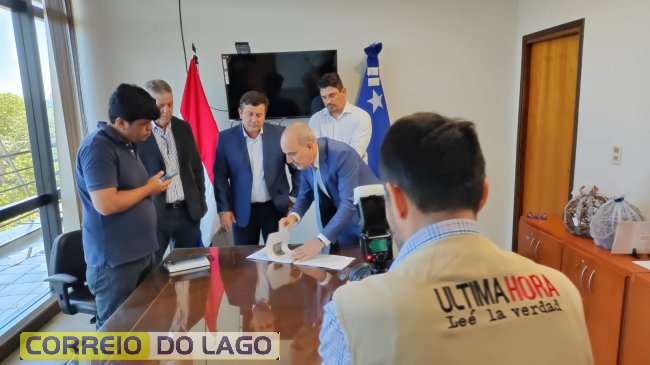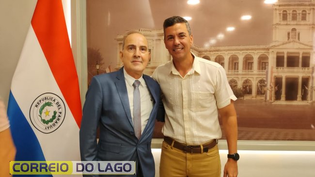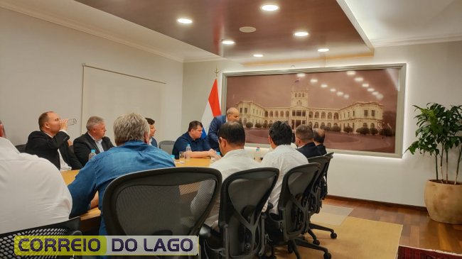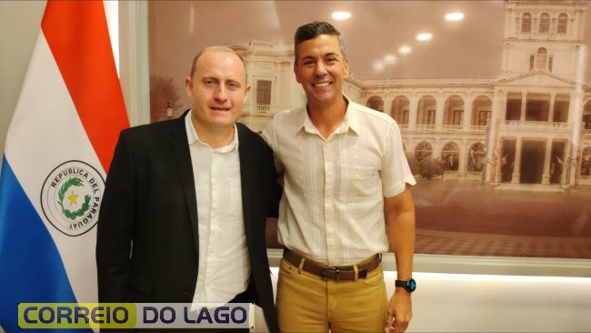 Em audiência oficial na residência da presidência em Assunção, o presidente do Paraguai, Santiago Peña, recebeu uma comitiva liderada pelo prefeito de Santa Helena, Dinho Maraskin, além de lideranças de Mbaracayú e Minga Porã.