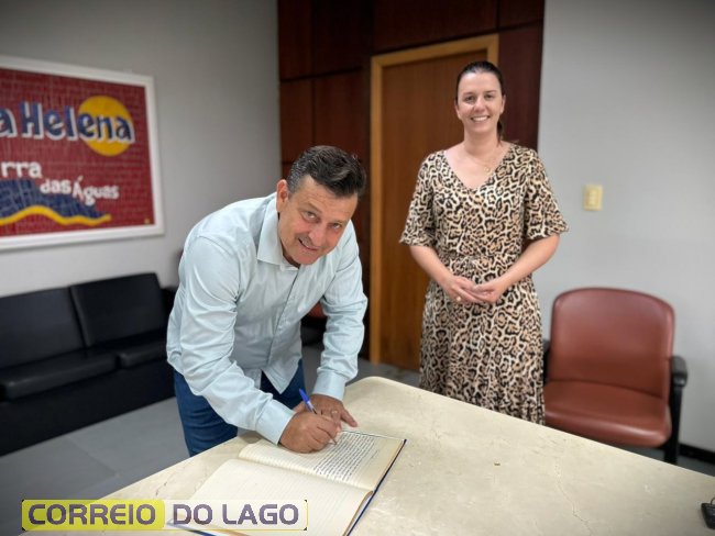 O prefeito Dinho Maraskin reassumiu a gestão da Prefeitura de Santa Helena nesta quinta-feira (5), após o encerramento de seu período de férias. Durante a ausência do titular, a administração municipal foi conduzida pela vice-prefeita Fabricia Bedendo.