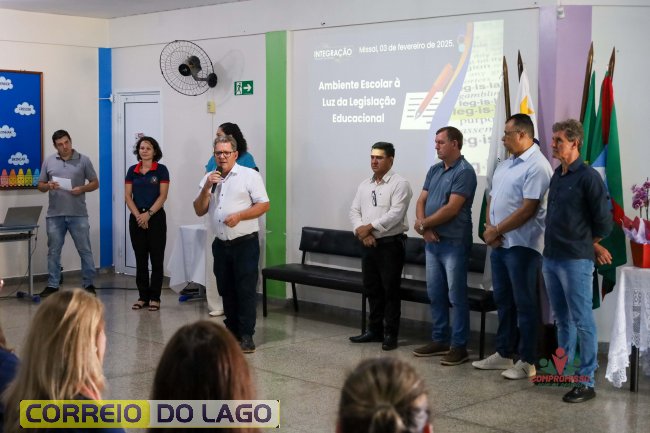 Na manhã desta segunda-feira (03), ocorreu a abertura oficial da Semana Pedagógica em Missal, que reuniu professores da Educação Infantil e do Ensino Fundamental, Professores PSS e Estagiários. O tema abordado com os profissionais da educação foi “Ambiente Escolar a Luz da Legislação Educacional”.