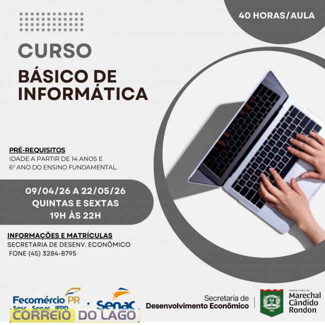A prefeitura de Marechal Cândido Rondon, por meio da Secretaria de Desenvolvimento Econômico e da Sala do Empreendedor, em parceria com o Senac, está com inscrições abertas para o curso Básico de Informática.