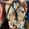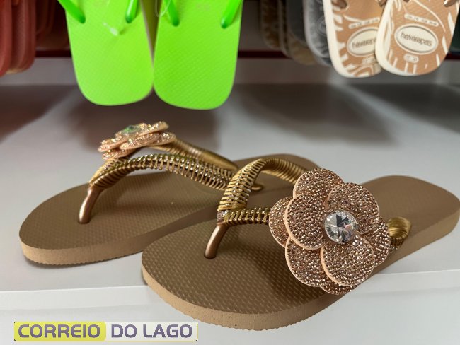 Entre os destaques estão os modelos Farm Rio, com cores vibrantes e detalhes que chamam atenção, além das versões com glitter, delicadas e modernas. As estampas e acabamentos trazem aquele toque que muitas vezes completa o look de forma natural, sem esforço, apenas com estilo.