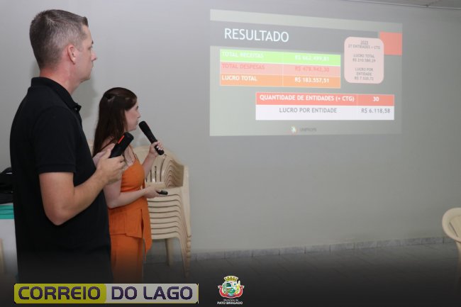 O resultado financeiro das comemorações do 33º aniversário de emancipação administrativa de Pato Bragado e da 36ª edição da Festa Nacional do Cupim Assado foi apresentado na noite desta quarta-feira (22), durante prestação de contas realizada no salão de eventos (antigo café colonial) do parque de exposições.