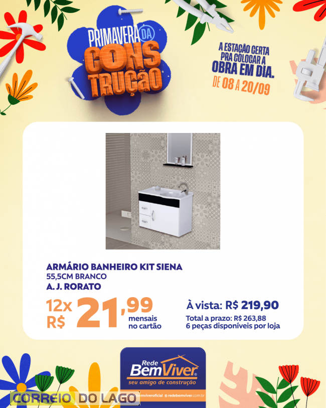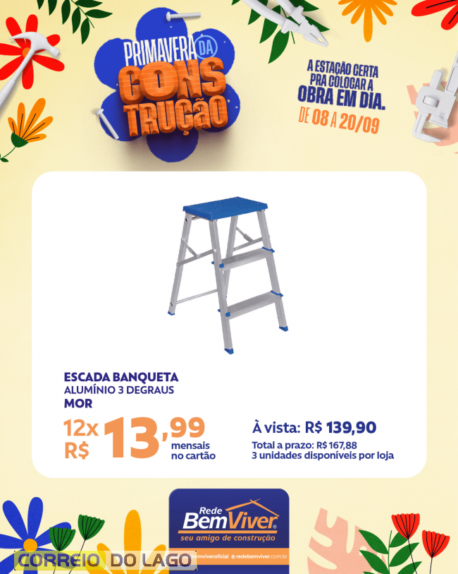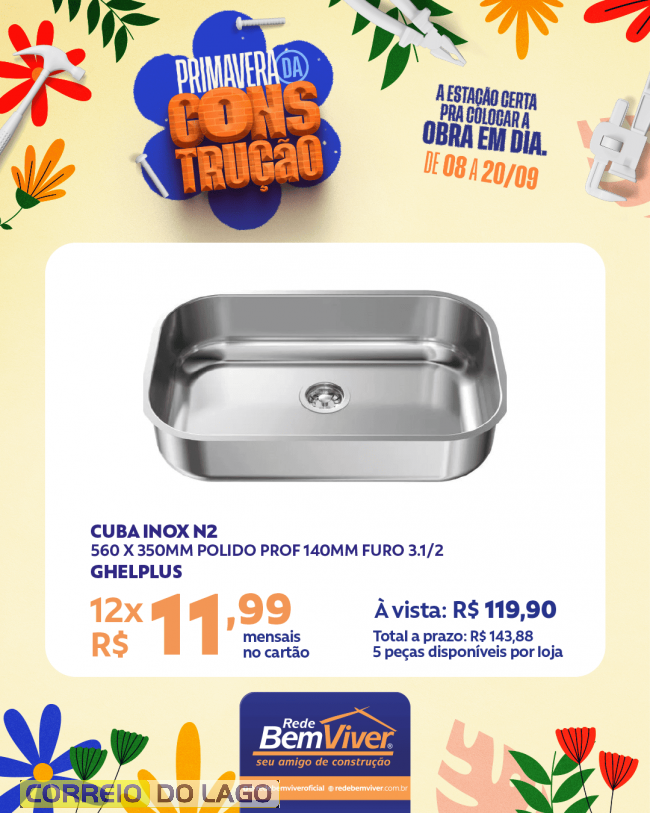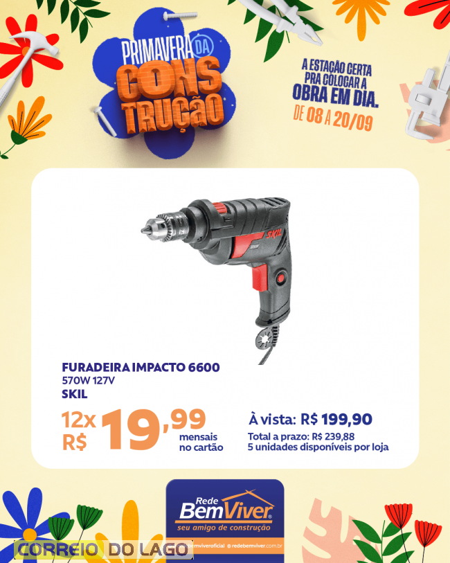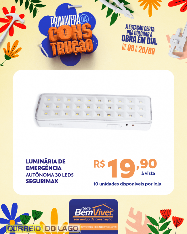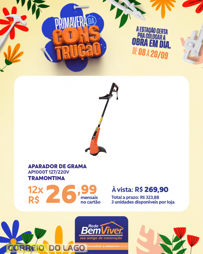 Todos os produtos e equipamentos estão disponíveis para consulta na loja, com atenção para itens com estoque restrito. A Primavera da Construção acontece no Ponto Forte em Santa Helena.