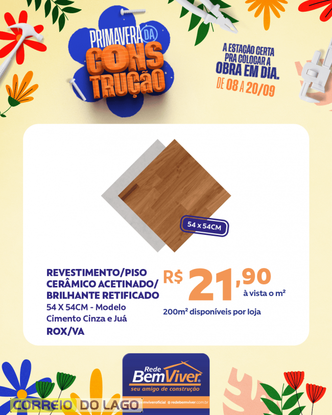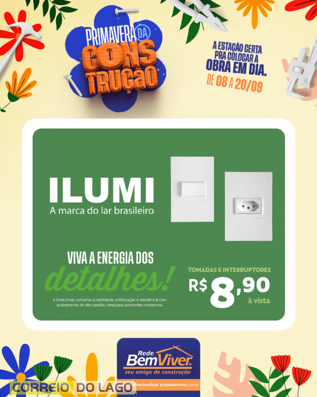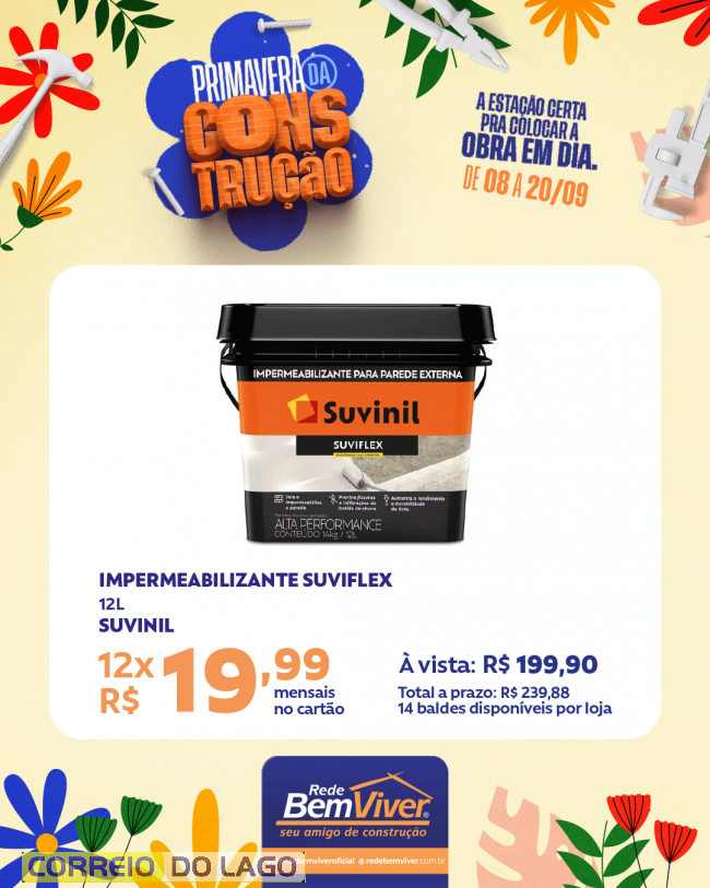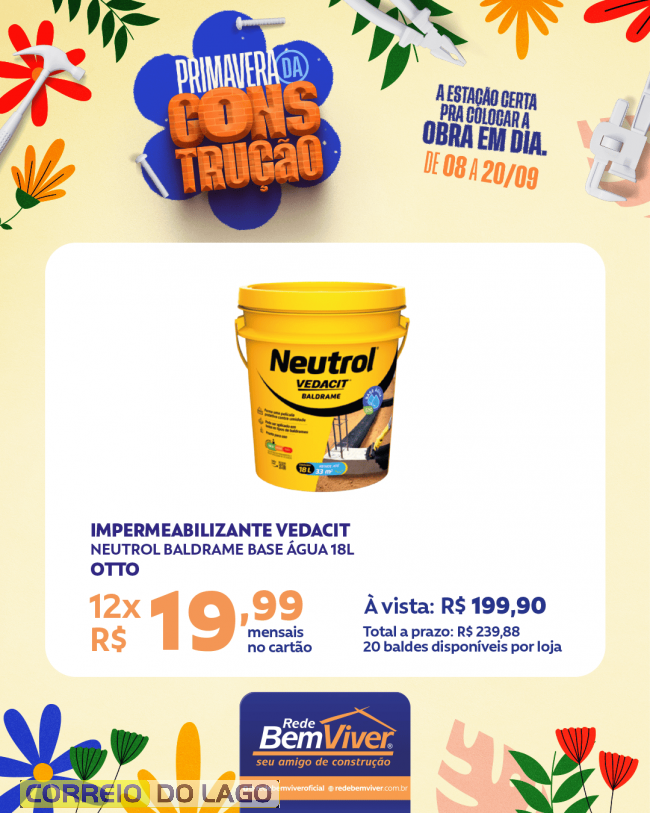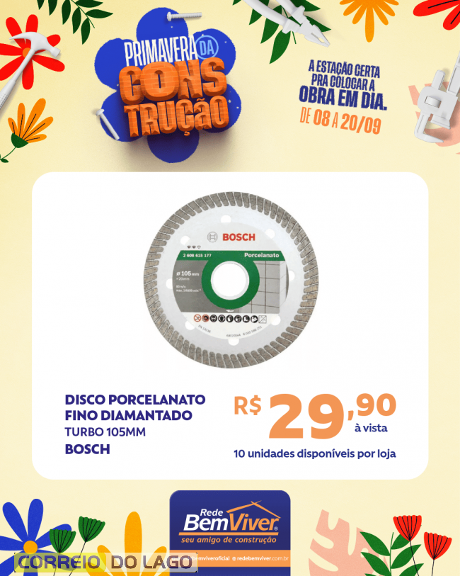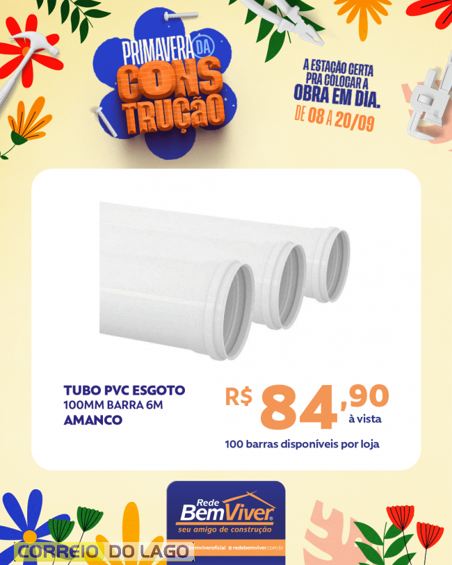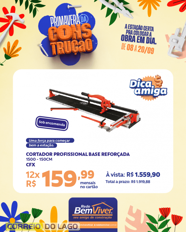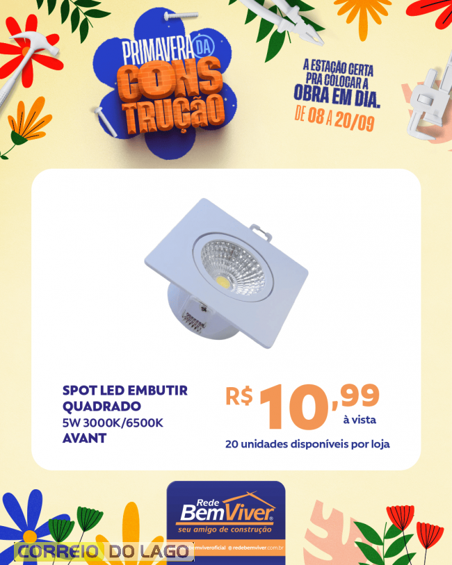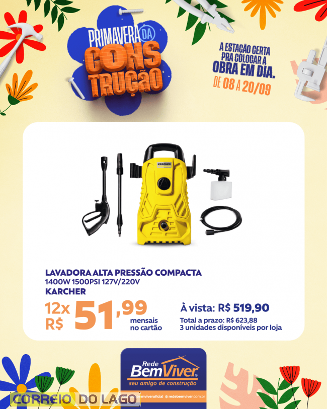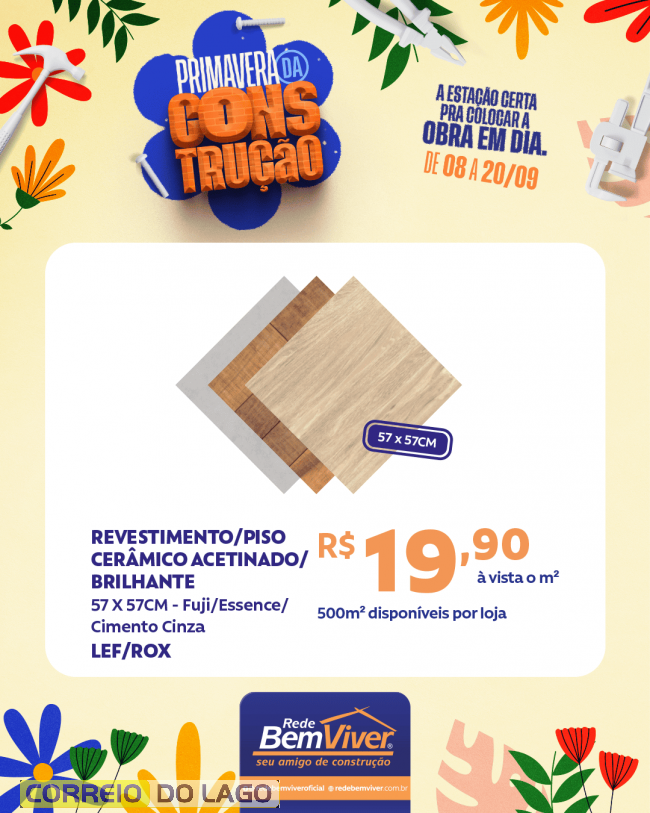Entre os dias 8 e 20 de setembro, clientes podem aproveitar a Primavera da Construção do Ponto Forte – Rede Bem Viver com descontos em produtos e equipamentos para obras, reformas e melhorias na casa.