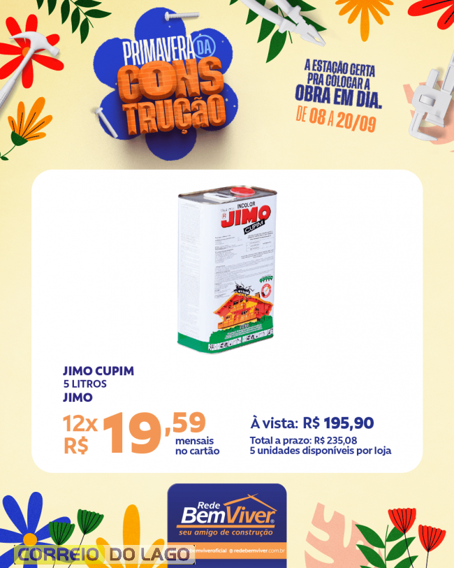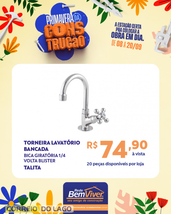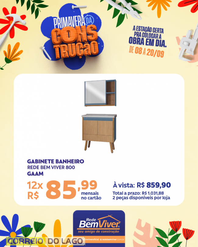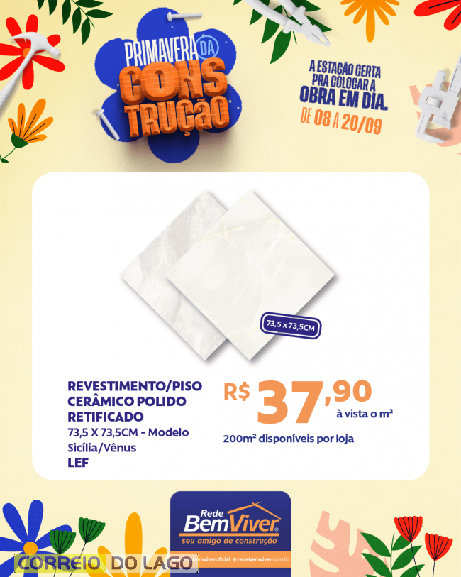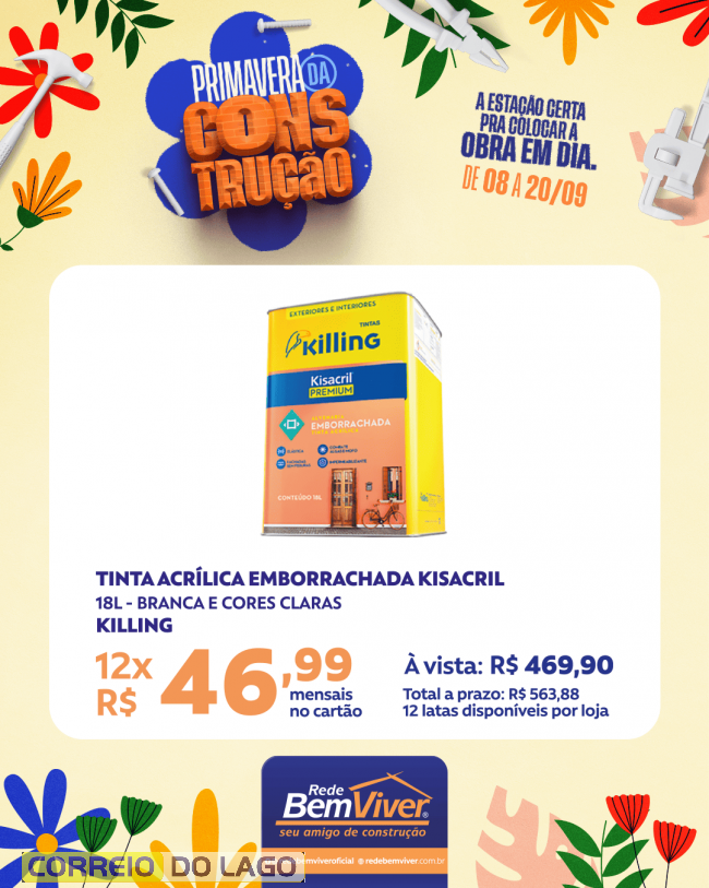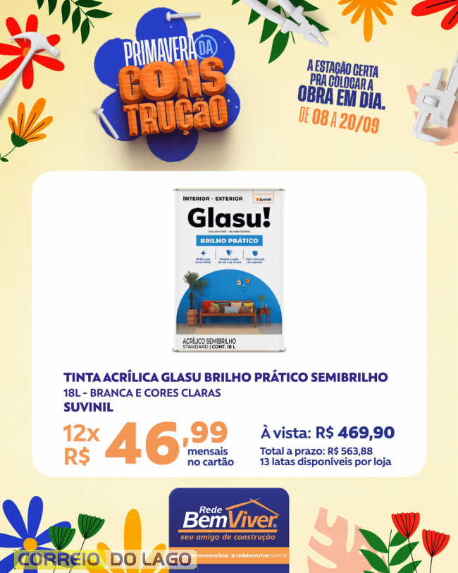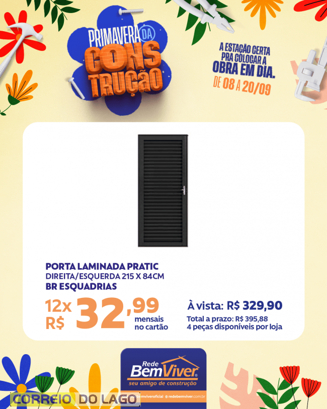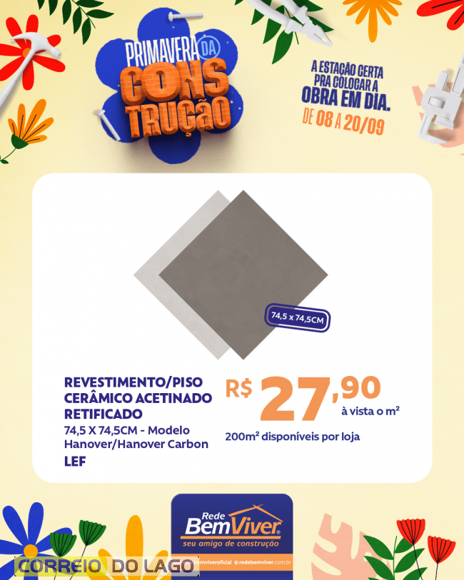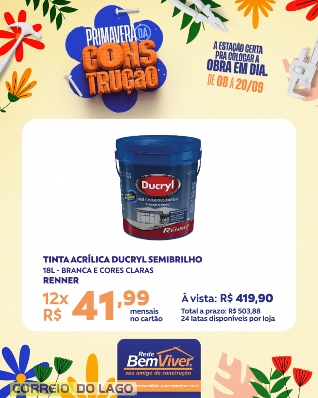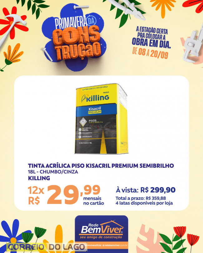 Entre os dias 8 e 20 de setembro, clientes podem aproveitar a Primavera da Construção do Ponto Forte – Rede Bem Viver com descontos em produtos e equipamentos para obras, reformas e melhorias na casa.