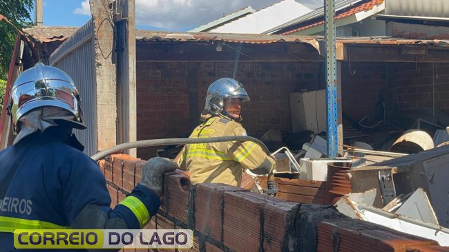 Ao chegarem ao local, as equipes constataram que as chamas atingiam uma edícula localizada nos fundos da residência. Conforme informações preliminares, o fogo teria iniciado após o proprietário, supostamente, queimar folhas de papel no local.