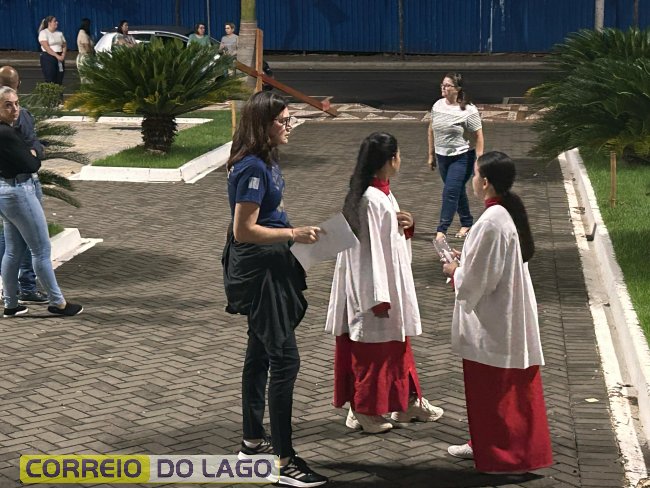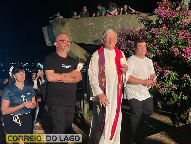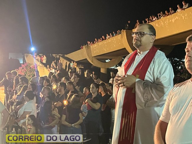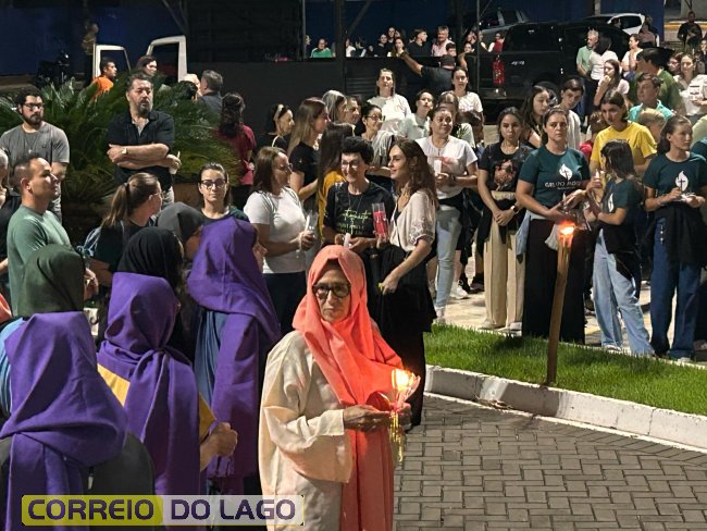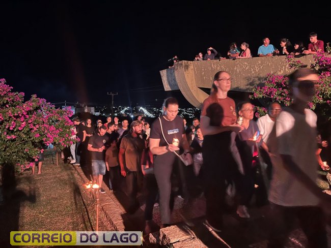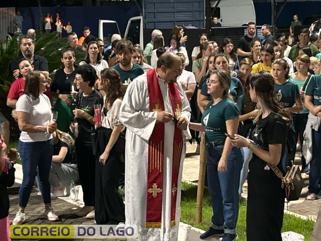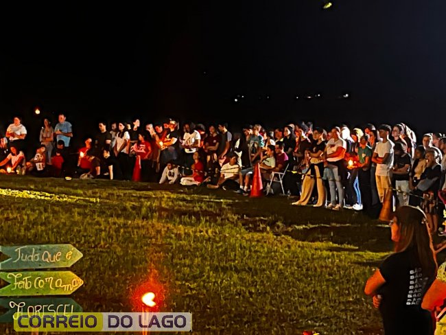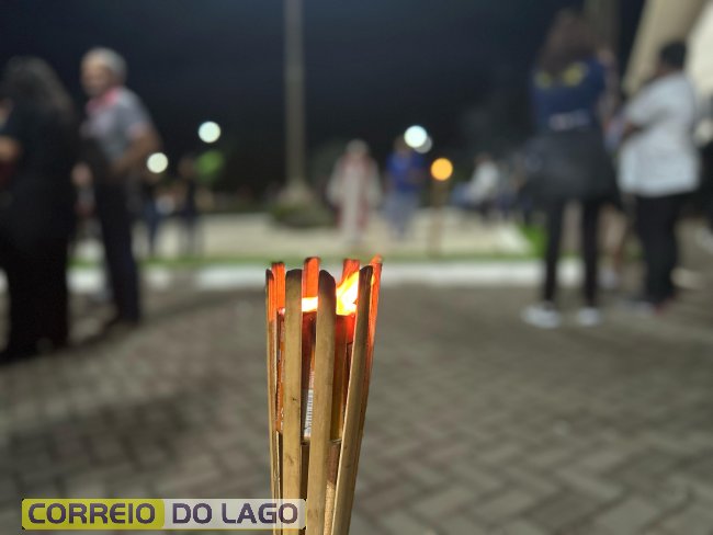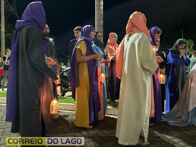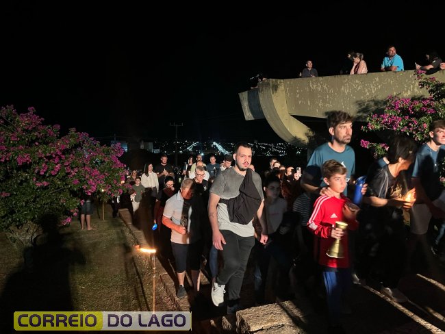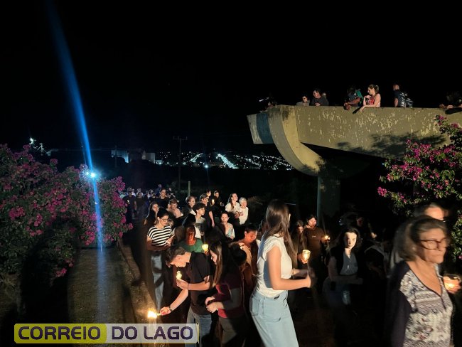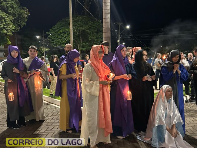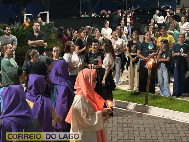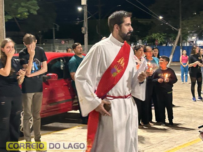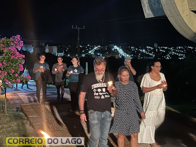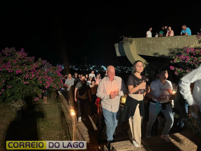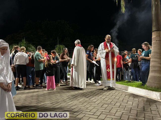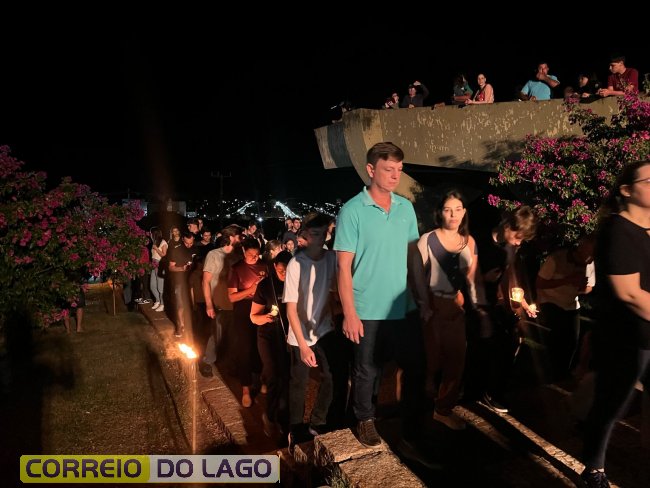 A procissão teve início às 19h, saindo da Igreja Matriz com destino ao Cristo Esplendor, iluminada pela luz das velas carregadas pelos participantes. O cortejo representou o percurso de Jesus rumo ao Calvário, revivendo Sua Paixão e convidando os presentes à entrega espiritual e à meditação sobre o amor e sacrifício de Cristo.