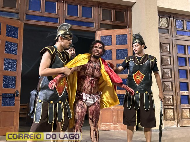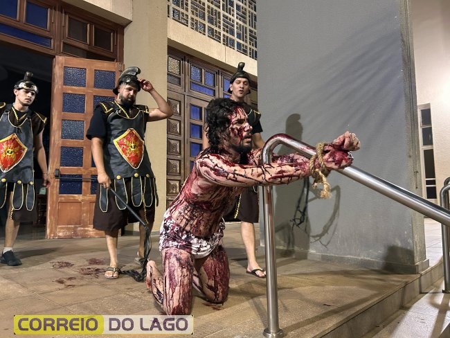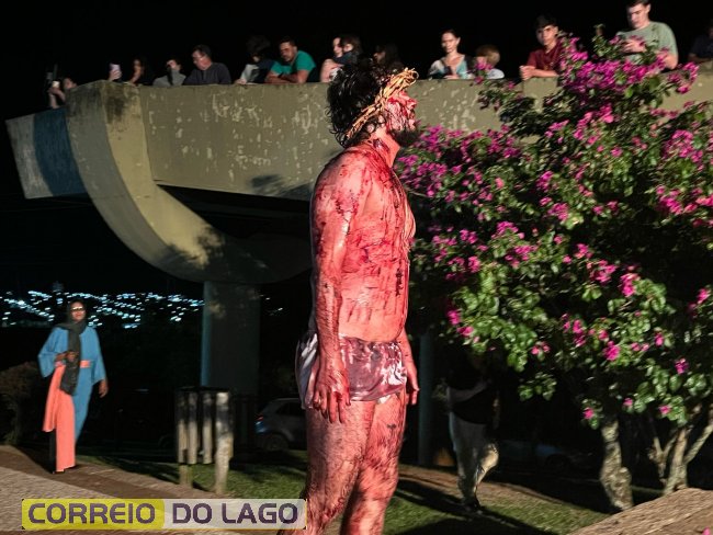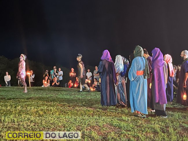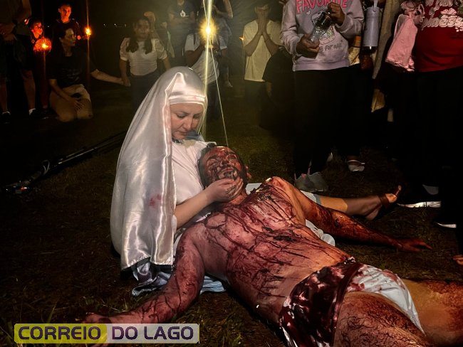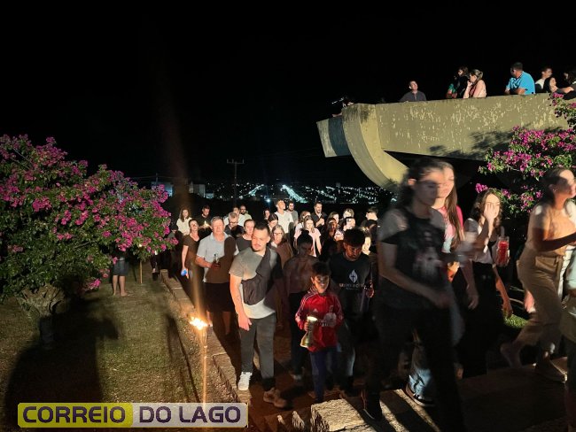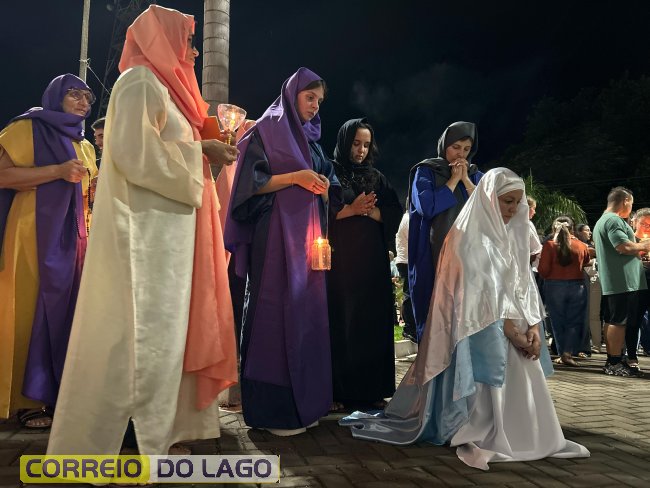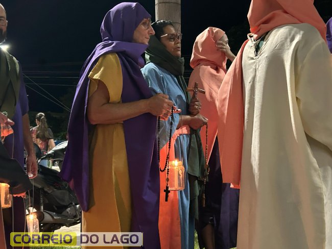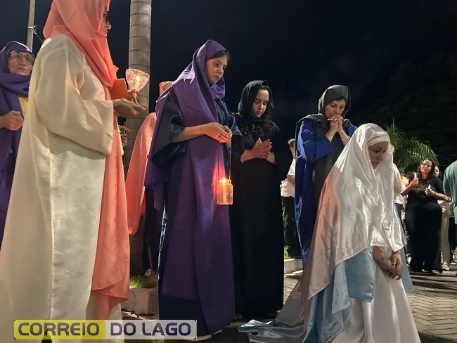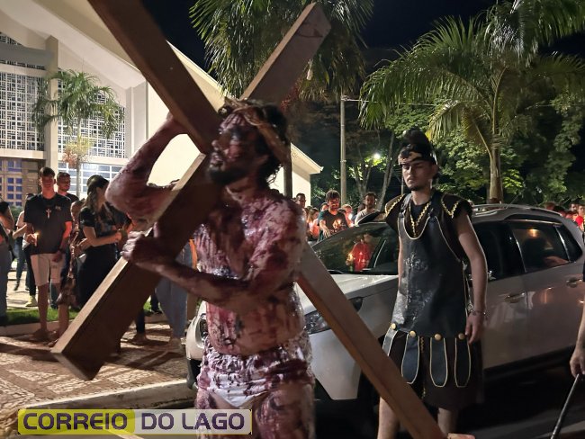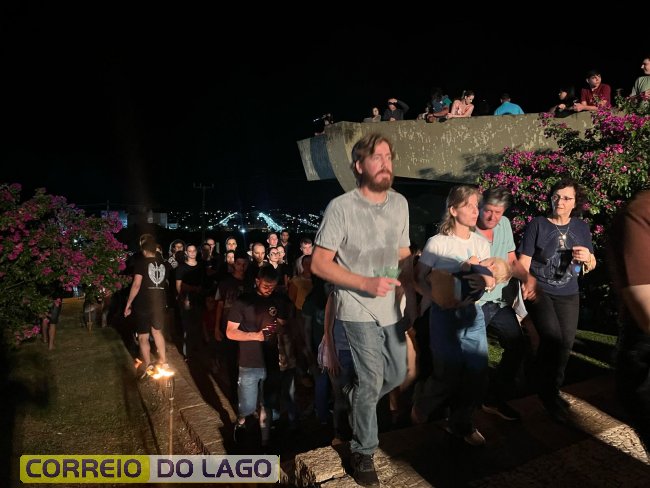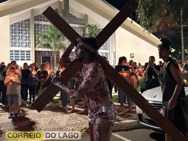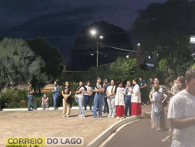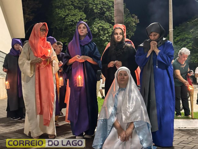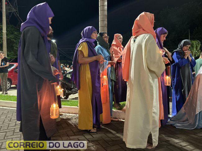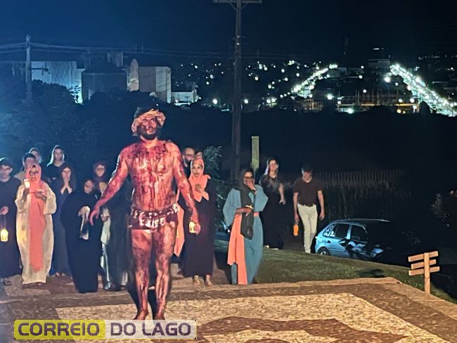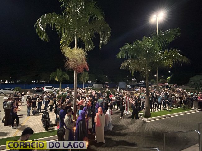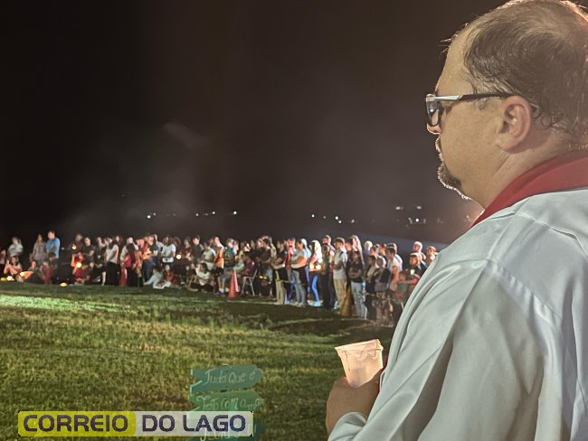 A procissão teve início às 19h, saindo da Igreja Matriz com destino ao Cristo Esplendor, iluminada pela luz das velas carregadas pelos participantes. O cortejo representou o percurso de Jesus rumo ao Calvário, revivendo Sua Paixão e convidando os presentes à entrega espiritual e à meditação sobre o amor e sacrifício de Cristo.