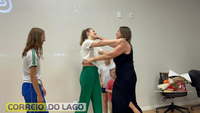 Durante a recepção, vídeos com mensagens de carinho foram exibidos para toda a comunidade escolar, incluindo declarações emocionantes de colegas e até de sua primeira professora. A família de Michele também esteve presente nesse momento especial, que foi marcado por presentes, abraços e muita emoção. Emocionada, a educadora compartilhou com crianças e adolescentes as experiências vividas ao longo dos 30 dias fora do país, sendo três semanas dedicadas à formação pedagógica intensiva.