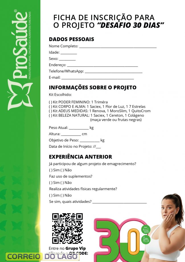 Os participantes terão acesso a um grupo exclusivo no WhatsApp, onde receberão orientações diárias sobre alimentação, dicas de atividades físicas e estratégias para aprimorar o bem-estar.