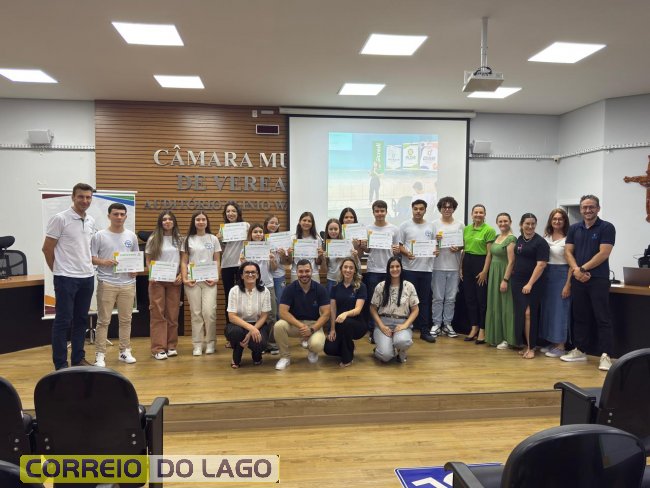 O Projeto Empreendedorismo na Escola, desenvolvido pelo Conselho do Jovem Empreendedor (COJEM) de Santa Helena em parceria com o Sicredi, a Associação Comercial e Empresarial de Santa Helena (ACISA) e colégios estaduais do município, encerrou as atividades da edição 2025 com cerimônia de formatura realizada na noite desta quinta-feira (6), na Câmara Municipal.