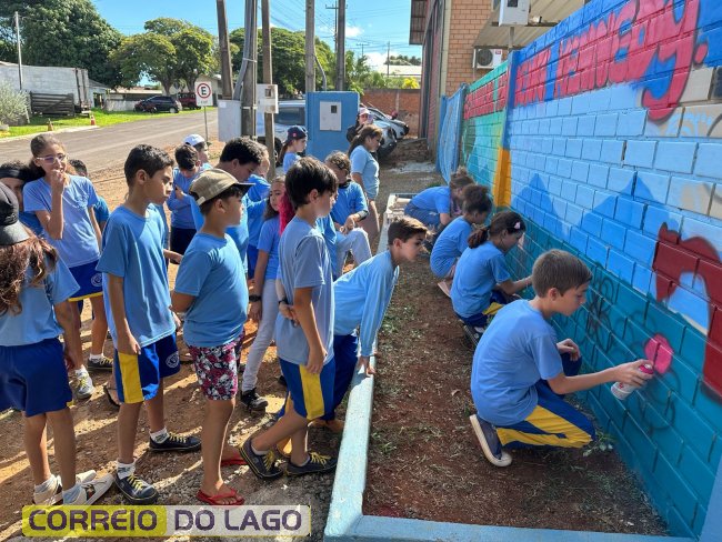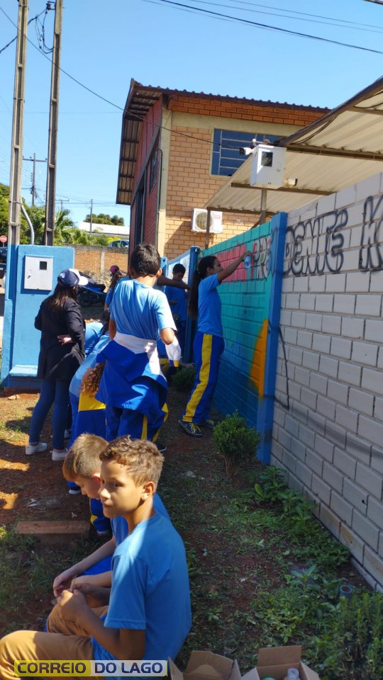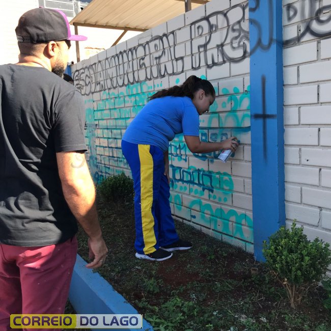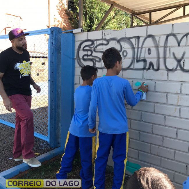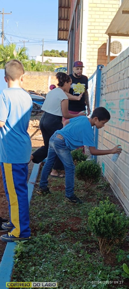 Projeto Linha Ecológica leva oficina de grafite à Escola Municipal Presidente Kennedy, em Diamante do Oeste