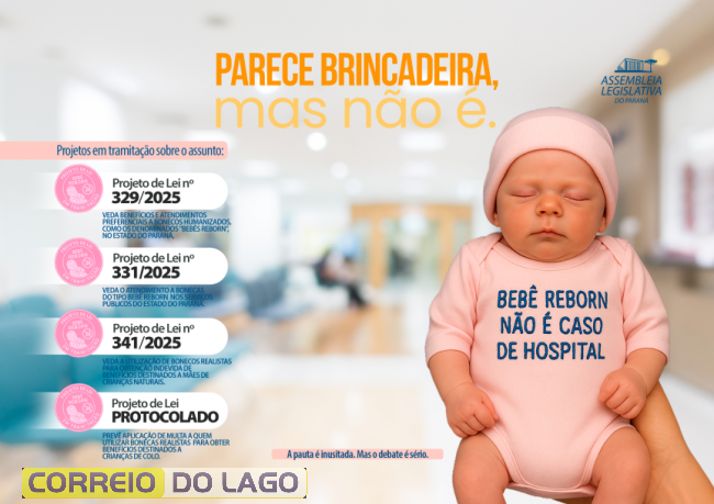 A discussão sobre os bonecos que praticamente simulam crianças reais, os conhecidos bebês reborn, e que tem gerado muita polêmica no Brasil nas últimas semanas, chegou ao Poder Legislativo. Já tramitam na Assembleia Legislativa do Paraná, projetos de lei que visam impedir a utilização desses bebês para obtenção de benefícios destinados exclusivamente a crianças de colo e seus responsáveis.