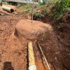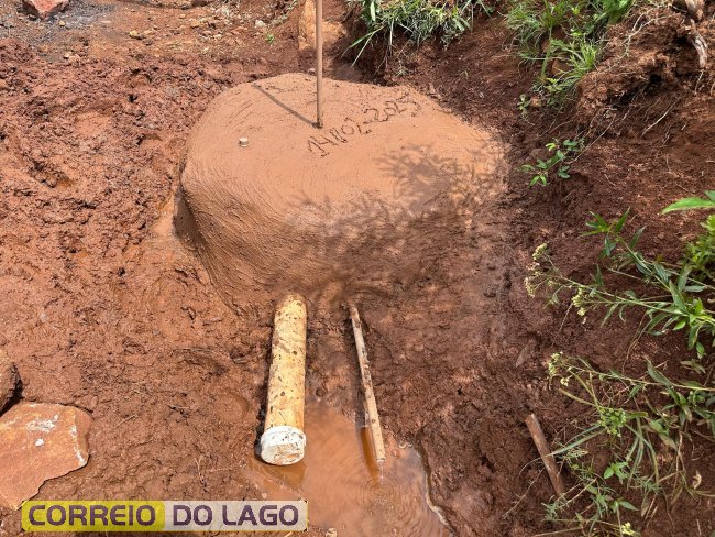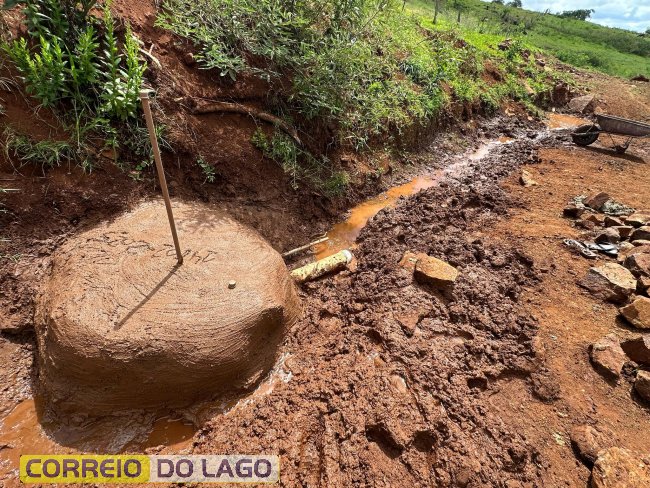 A técnica utilizada para proteger a nascente de água foi solo-cimento. Trata-se de uma nascente pequena, mas que com o encanamento da água e direcionamento para um reservatório adequado, irá proporcionar uma água limpa e de qualidade para o rebanho, garantindo o bem estar animal e consequentemente, aumentando a renda com produção de leite na propriedade.