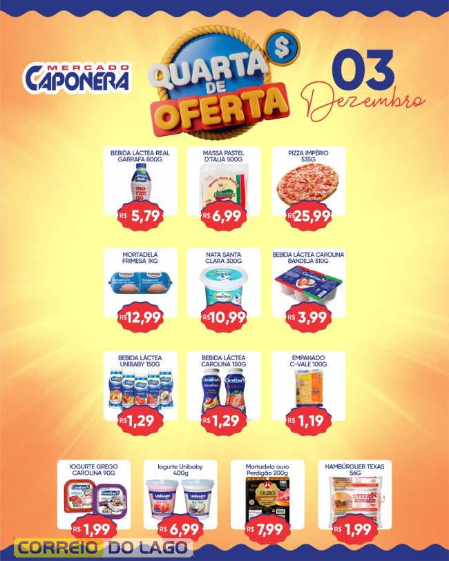 Muitas ofertas especiais esperam por você no Mercado e Açougue Caponera nesta quarta-feira (3).