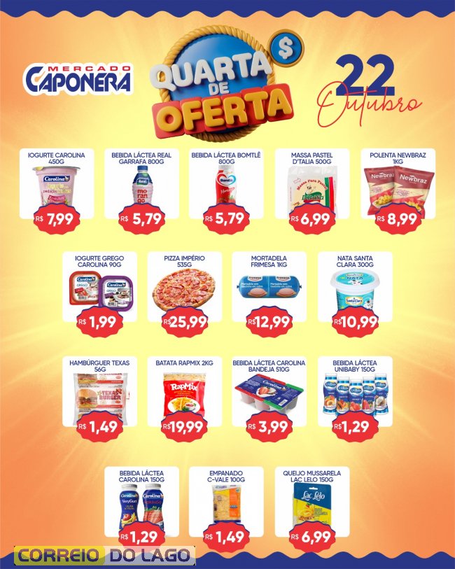 Nesta quarta-feira (22), o Mercado Caponera traz descontos especiais em uma variedade de produtos, garantindo economia e qualidade para toda a família.