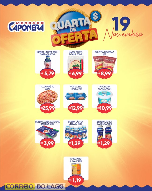 Nesta quarta-feira (19), o Mercado Caponera traz descontos especiais em uma variedade de produtos, garantindo economia e qualidade para toda a família.