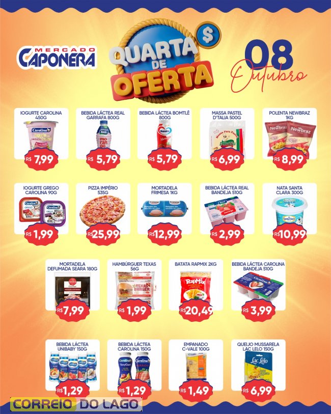 Muitas ofertas especiais esperam por você no Mercado e Açougue Caponera nesta quarta-feira (8).