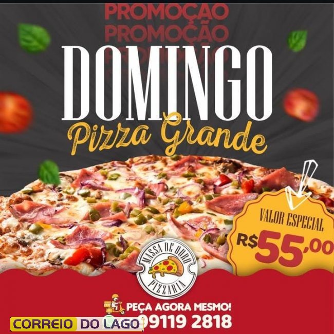 Nada melhor do que encerrar o fim de semana com uma boa pizza. Neste domingo (13), a Pizzaria Massa de Ouro oferece uma promoção especial: pizza grande por apenas R$ 55,00.