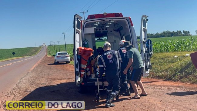No local do acidente, os socorristas encontraram um homem e uma mulher, ambos moradores de Santa Helena, que estavam em uma motocicleta com placa paraguaia. O homem apresentou escoriações no braço, enquanto a mulher apresentava suspeita de fratura na região da costela.