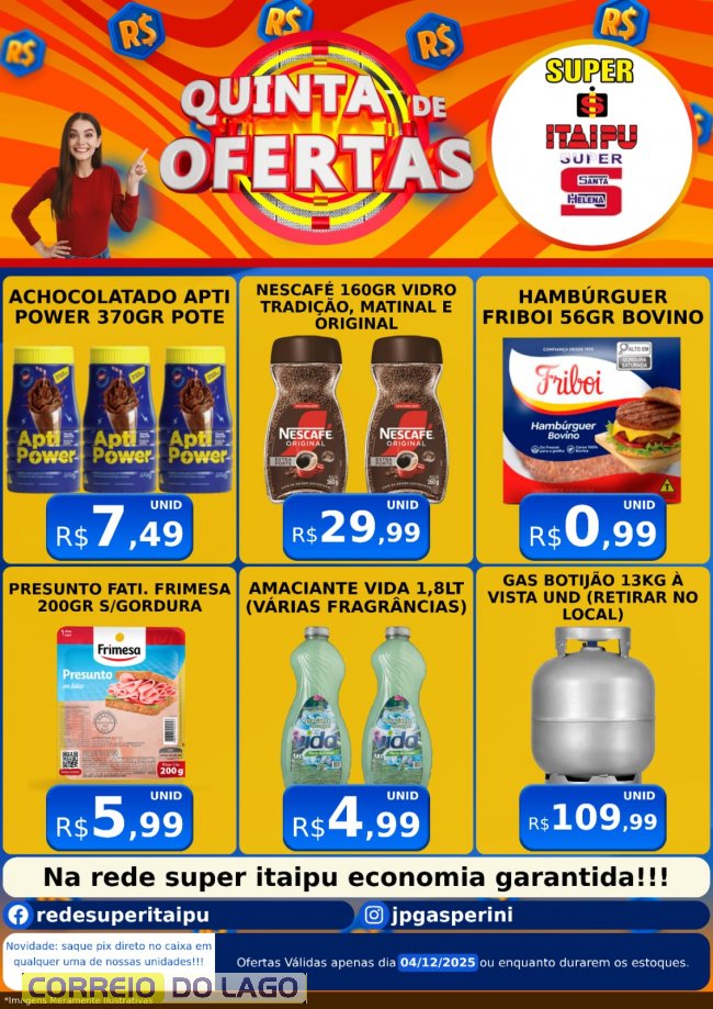 Quinta de ofertas para você economizar no Super Itaipu e Super Santa Helena
